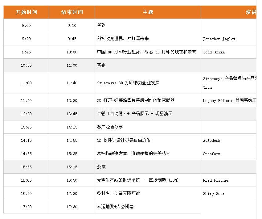 本次3D打印亞(ya) 太高峰論壇將聚集全球 3D 打印行業(ye) 領軍(jun) 人物、業(ye) 內(nei) 知名人士共同探討 3D 打印行業(ye) 最新動態和發展趨勢,同時主辦方Stratasys還邀請了知名企業(ye) 、海外專(zhuan) 家及學者共同交流 3D 打印在各行業(ye) 的應用實踐經驗。會(hui) 議邀請了包括全球 3D 行業(ye) 最具影響力的知名人士 Todd Grimm 及好萊塢特效公司 Legacy Effect 首席係統工程師 Jason Lopes 等,共同分享各自在 3D 打印領域的體(ti) 會(hui) 、經驗與(yu) 創新應用。 毋庸置疑,此次論壇將成為(wei) 3D 打印領域最值得期待的盛會(hui) 之一。