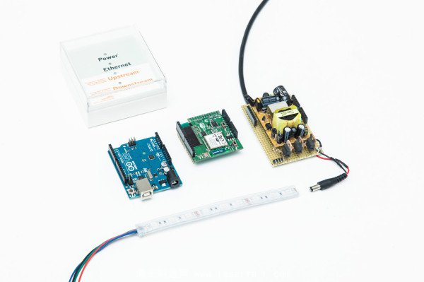 “天空眼罩”基於(yu) Arduino 和 BERGCloud 設計,這些物聯網硬件和軟件係統將燈具連接到互聯網上。用戶在使用時首先通過 Facebook 賬戶注冊(ce) ,接受天氣信息的一方隻需將路由器連接到 BERGCloud Bridge 上即可將燈連到網上。