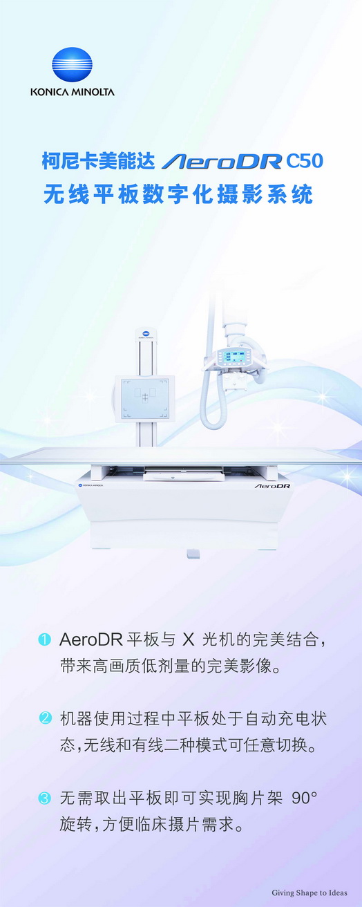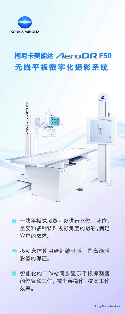 在9月18日召開的“2014第三十二屆中國國際醫療器械(山東(dong) )博覽會(hui) (秋)”(簡稱:秋季醫博會(hui) )上,柯尼卡美能達醫療印刷器材(上海)有限公司將攜帶最新的無線平板數字化攝影係統AeroDR C50/F50亮相。