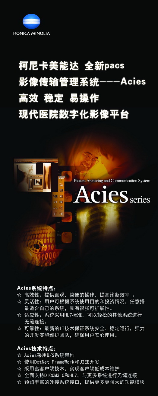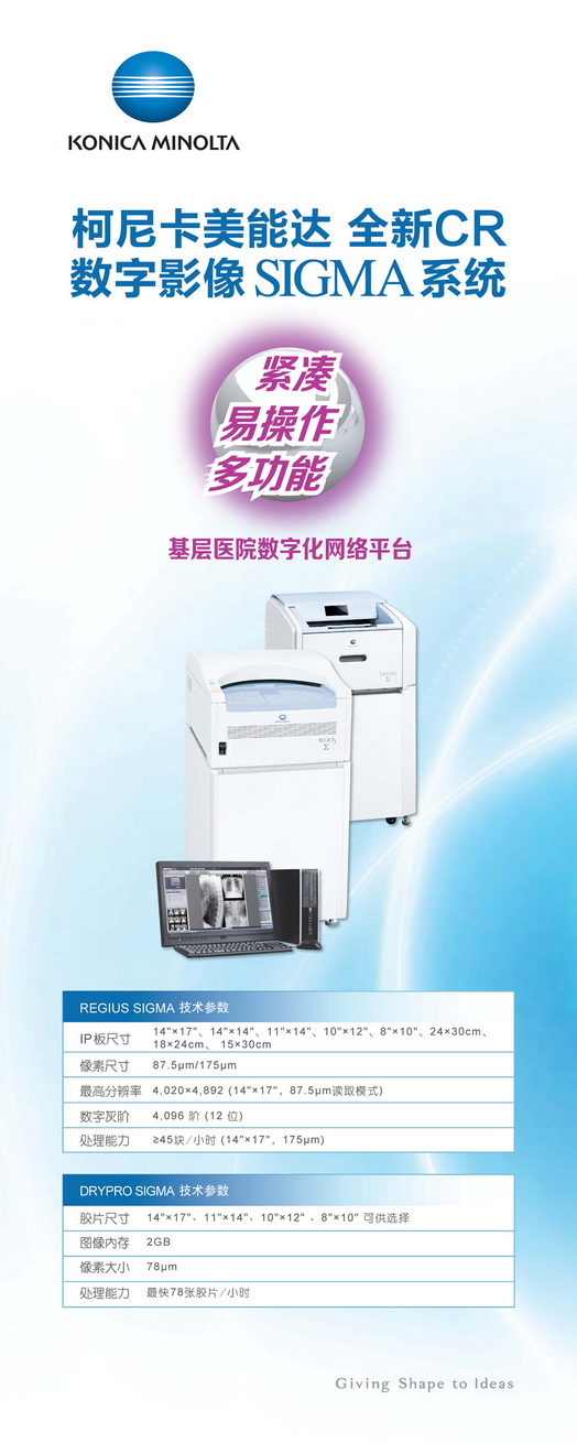 柯尼卡美能達的醫療保健業(ye) 務致力於(yu) 為(wei) 醫療機構提供使用了最先進圖像處理技術的診斷成像係統的製造、銷售、維修和服務。產(chan) 品涵蓋數字X線圖像診斷係統(CR、DR)、數字乳腺X線攝影係統、超聲波圖像診斷裝置、醫療用圖像存儲(chu) 設備、醫療用圖像一體(ti) 化係統、醫療用經營輔助服務、診斷用藥等。