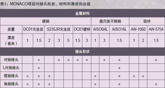 這個(ge) 項目對使用碟片激光進行焊接的幾種形狀的接頭(對接接頭、搭接接頭和角接接頭,見圖3)以及幾種金屬材料和不同厚度的組合(目前製造業(ye) 中最常見的組合)進行了評估,並且與(yu) 鎢極氣體(ti) 保護電弧焊(GTAW)進行了比較,見表1。