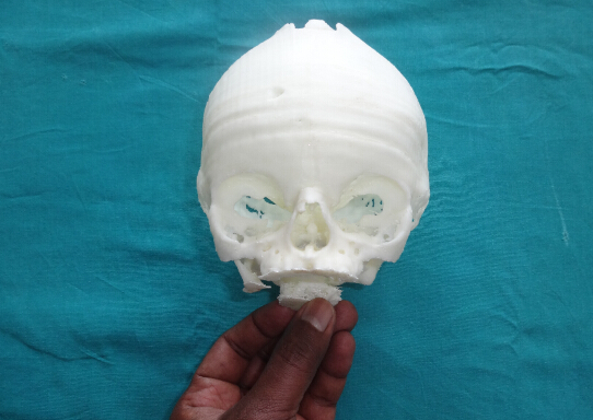最近,Divide By Zero因使用3D打印技術幫助醫生成功完成了一例對4歲女孩的顱骨手術而在印度名聲大噪。據了解,這位印度小女孩得了顱縫早閉症,由於(yu) 她的顱骨形狀獨特,因而手術難度相當高。傳(chuan) 統上整形外科的術前規劃都是二維的。而這次為(wei) 了提高手術成功率,醫療機構JIPMER(Jawaharlaal institute of medical research visakhapatnam India)的醫生們(men) 決(jue) 定使用3D打印技術來幫助規劃整形手術需要的細節。 他們(men) 將女孩的頭部CT掃描數據發送給了Divide By Zero。由該公司將CT數據轉化成3D文件並用Accucraft-I250 + 3D打印機打印出來。