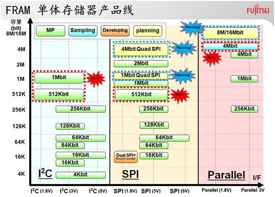 富士通半導體(ti) FRAM產(chan) 品線涵蓋SPI、IIC、並行接口