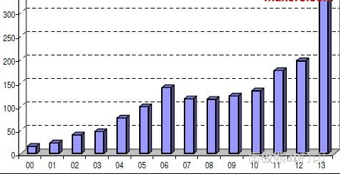 3D打印行業(ye) 著名谘詢機構Wohlers Associates稱,在全球範圍內(nei) ,針對金屬零部件的增材製造(AM)係統越來越受歡迎。如下麵的圖表所示,Wohlers Associates追蹤了金屬3D打印機市場14年的銷售數據,這也是該公司第二次公布金屬3D打印機的年度銷售數字。根據圖表顯示,2013年有348台金屬3D打印機被售出,相較於(yu) 2012年的198台增長了75.8%。需要特別說明的是,金屬3D打印機一般用於(yu) 直接打印最終產(chan) 品或功能性部件。