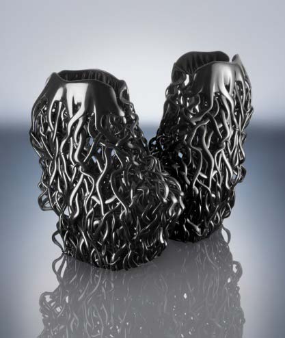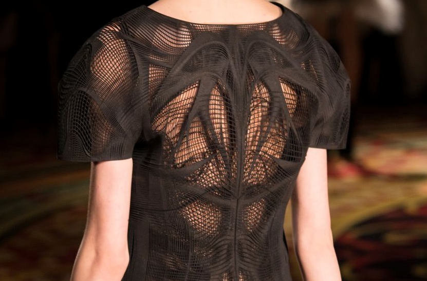 圖一:這條黑色短裙獨特複雜的蕾絲(si) 狀紋理必須采用Mammoth立體(ti) 技術光固化技術(Mammoth Stereolithography machines)製作。參與(yu) 設計的建築師(沒錯,真是建築師)Koerner說:“對計算機、3D打印以及新材料相結合的探索,給服裝帶來了新的吸引力和神秘感,也給時裝界帶來了無縫成衣的諸多可能性。”