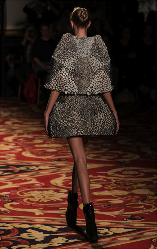 在服裝設計中,3D打印技術可以被用在那些漂亮並且獨具功能的部分,為(wei) 傳(chuan) 統技藝增加價(jia) 值。這次3D打印技術支持來源於(yu) Stratasys。