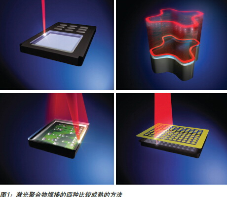 激光聚合物焊接是一種無振動、非接觸且非常精確的焊接塑料部件的方式。如今,激光透射焊接有四種較為(wei) 成熟的方法(圖1)。在輪廓焊接中,一束激光投射到待焊接工件上,接著激光束沿著待焊接區域的輪廓掃描一周,兩(liang) 個(ge) 夾緊的塑料部件上被掃描的區域由此被融化並連接在一起。在準同步焊接中,兩(liang) 個(ge) 掃描鏡以非常高的速度沿著輪廓多次偏轉激光光斑。在這種方法中,整個(ge) 圖案的加熱和連接幾乎是同步完成的。在同步焊接中,完全相同形狀的圖案輪廓被激光光束融化並同時連接。在掩膜焊接中,線狀的激光束穿過反射掩膜,掩膜的陰影區下方是不需要連接的區域。
