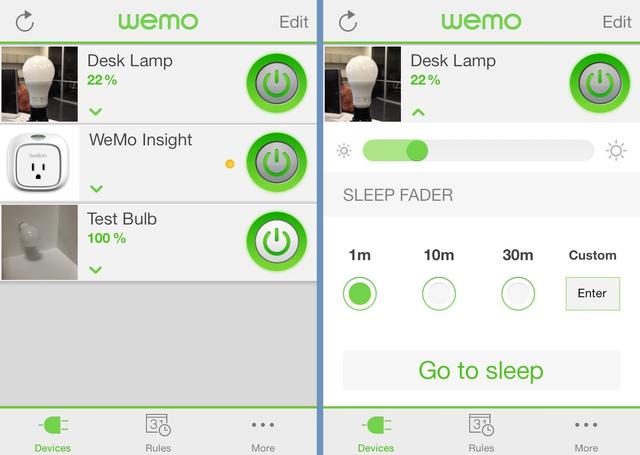 WeMo的上手難度並不大,一切準備就緒之後,WeMo首先會(hui) 用綠色和橙色燈光提醒你連接成功,然後你要做的事就是拿出智能手機,連接WeMo Link無線網絡並打開WeMo應用,這時係統就會(hui) 自動檢測連接到網絡的智能燈泡,之後你就可以切換回家庭網絡了。不僅(jin) 如此,WeMo智能LED還支持與(yu) WeMo Light Switch以及WeMo Switch+Motion配合使用,通過WeMo應用即可設定各種自定義(yi) 規則,比如當WeMo Motion檢測到動作時就打開燈等。