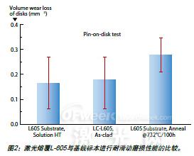 與(yu) 鍛L-605基線標本相比,激光熔覆L605標本具有略高的硬度和相當的耐滑動磨損性能。