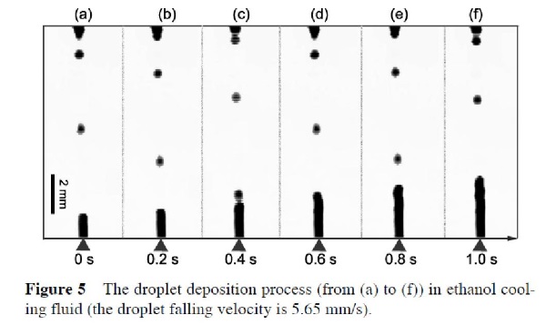 液滴在無水乙醇冷卻流體(ti) 中的沉積過程(A→F)