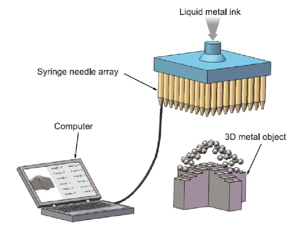 近年來,低熔點合金在芯片冷卻、熱界麵材料、微流道等方麵得到了越來越多研究者的關(guan) 注,這種材料在直接書(shu) 寫(xie) 電子和 3D打印技術上具有顯著的研究價(jia) 值。當前的金屬3D打印技術主要是采用激光對金屬粉末進行燒結成型的辦法,一般采用空氣冷卻的方式,降溫凝固速度較慢,打印成本較高。