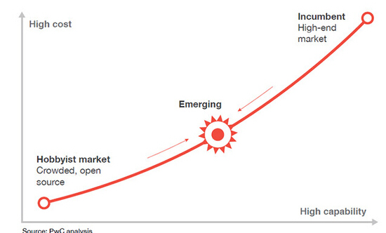 在實際製造應用中,有些在傳(chuan) 統製造(減材製造)無法完成時,才會(hui) 采用3D打印技術;有些企業(ye) 使用3D打印技術製作成品。企業(ye) 使用3D打印技術製造的方式不同:有的在產(chan) 品初期;有的在產(chan) 品製成時。據PWC稱原型機製造是驅動3D打印技術被采用的原因,未來3D打印技術還是會(hui) 廣泛用於(yu) 原型機製造。據PWC調查顯示,新興(xing) 的3D打印機市場將會(hui) 被低成本、高質量重新定義(yi) 。