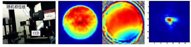圖1 (a) 是正在用於(yu) 實際測量的係統照片,主要部分僅(jin) 僅(jin) 包括一塊隨機相位版和一個(ge) CCD,結構非常緊湊。圖1(b)是所測量到的聚焦鏡前麵的激光束強度和相位分布,圖1(c)是遠場焦點的強度分布,所有這些測量僅(jin) 僅(jin) 通過采集一副衍射強度來實現。