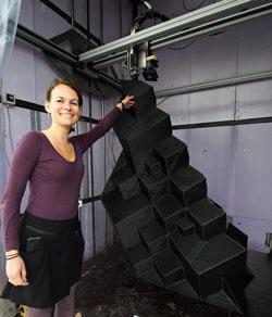 在荷蘭(lan) 阿姆斯特丹市區北部的老城區裏,立著一個(ge) 6米高的巨大銀色箱子。往裏麵一看,飛舞的噴管正在一層層地將黑色樹脂噴刷成奇形怪狀的物體(ti) 。