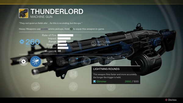 這款遊戲中豐(feng) 富多彩的武器係統是一大特色,各種武器風格各異,設計十分精美,受到眾(zhong) 多玩家的欣賞。其中有一款武器就吸引了眾(zhong) 多擁躉,那就是超級拉風的異種重機槍——雷霆之王(Thunderlord)(見下圖)。
