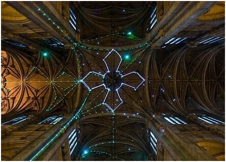 據報道,這是藝術家博阿斯的傑作,他在教堂穹頂及旁邊的高位安裝激光裝置,隻要遊人透過手機發送短訊到特定號碼,便可觸發激光裝置,以激光展現不同的圖案。有人用激光顯示十字架,也有人讓激光展現星座圖案等。