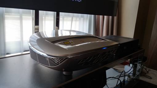 這台激光電視配備高透光率與(yu) 低色散的反射式超短焦鏡頭,憑借0.19的超短投射比,可實現超短距離的投射要求,而所搭配的102英寸16:9菲涅爾抗光屏還可有效過濾環境光,大幅度提升畫麵的對比度,提升色彩與(yu) 細節的還原能力。同時還內(nei) 置了智能操作係統,可實現資訊瀏覽與(yu) 影音播放等方麵的應用。