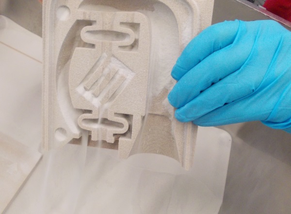 眾(zhong) 所周知,voxeljet的3D打印機主要采用化學粘合劑與(yu) 各種材料粉末相混合的方法來打印零部件。而這種酚醛直接粘合的方法不僅(jin) 在用砂材料進行打印時很有優(you) 勢,還可以用於(yu) 製造陶瓷模具。