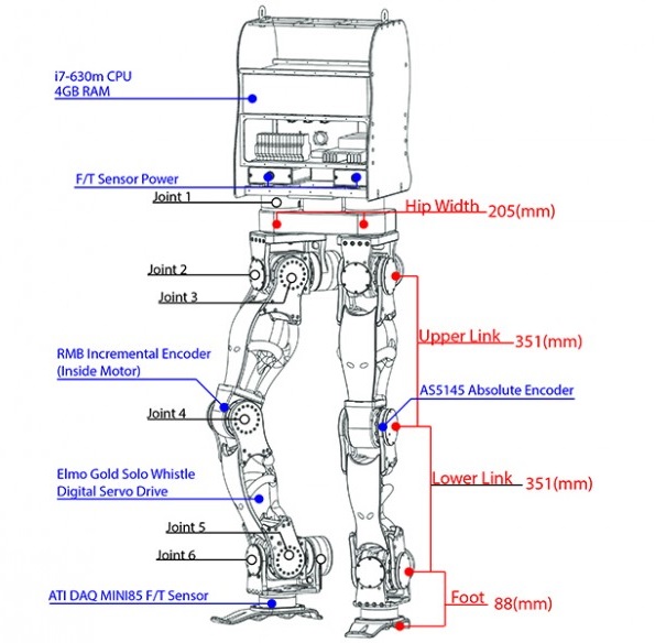 DyRoS的結構設計是由看似簡單的一個(ge) 個(ge) 框架使用大量的小螺絲(si) 組裝而成的,之所以這樣設計是為(wei) 了更方便於(yu) 植入電子設備。控製計算機被放置在了上部的“軀幹”部分,以便於(yu) 未來的設計和開發。這台控製計算機配置了Intel I7-630m處理器和4G DDR3內(nei) 存,裏麵運行的實時控製軟件roboticsLab。