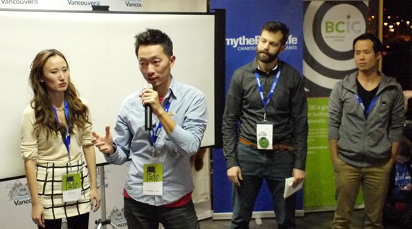 溫哥華創業(ye) 周是由穀歌讚助的全球性創業(ye) 比賽,參賽者們(men) 把自己的創業(ye) 理念在周五晚上陳述出來,之後集結團隊。經過54個(ge) 小時,把它開發,設計出來。最後由業(ye) 界精英人士選出最優(you) 秀的項目。