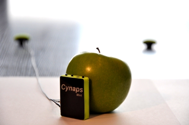 一個(ge) 叫做Max Virtual的公司(該網站隻是一個(ge) 預覽頁麵)已經使用這種傳(chuan) 導技術,把它變成一個(ge) 非常有趣的耳機,但Cynaps Mint又不像尋常的耳機,實際上你並不需要把它帶在耳朵上,如果你喜歡的話也可以把它帶在腦袋後麵。正如他們(men) 集資頁麵上鼓勵式的說法:為(wei) 你而造。這種耳機,或者稱作“傳(chuan) 感器”更為(wei) 合適,它通過震動產(chan) 生聲音,你可以用不同的方式不同的風格來戴在頭上。或者你也可以把它放在桌麵上或者玻璃上來播放音樂(le) ,“我們(men) 的傳(chuan) 感器非常強大,它可以講音樂(le) 填滿你的房間,也可以使音樂(le) 變化出別樣的風格,一切取決(jue) 你使用什麽(me) 樣的表麵來傳(chuan) 遞音樂(le) 。”