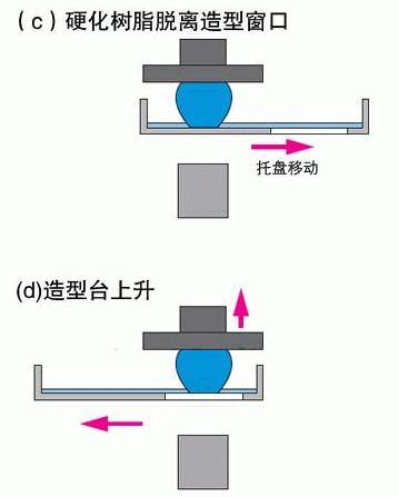 Ember為(wei) 采用紫外線硬化樹脂的光固化快速成型方式的3D打印機。盛放樹脂的托盤底部有透明部分(造型窗口),在這個(ge) 位置使造型物稍微上浮(1層)並保持這種狀態,透過造型窗口從(cong) 下麵照射紫外線,使造型物與(yu) 造型窗口之間的樹脂硬化(曝光)。硬化的樹脂粘在上麵的造型物和下麵的造型窗口上,移動托盤和造型窗口,使硬化樹脂與(yu) 造型物分離。然後進行下一層的曝光,不斷重複這一過程進行造型。精度為(wei) 數十微米級。