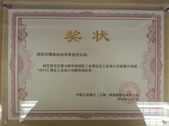 2014年11月,湖南華曙高科技術有限公司在第16屆中國國際工業(ye) 博覽會(hui) 工業(ye) 設計創新展中榮獲“2014工博會(hui) 工業(ye) 設計創新獎組織獎”,工博會(hui) 是目前中國最具影響力的國際工業(ye) 展...