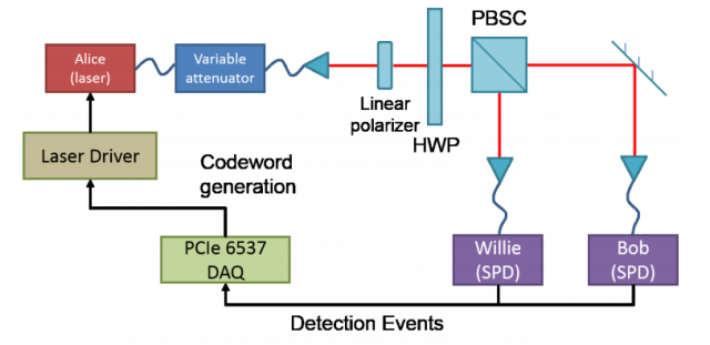 這種方法需要通過激光傳(chuan) 輸資料,主要思路是將信息轉化為(wei) 毫無相幹的光子束,這樣一來即使在線路中監察信息,看到的也隻是一堆雜亂(luan) 無章的光子而已。但是這種方法需要一種特別的轉化係統,並且隻有發送者和接收這雙方持有,這樣一來就隻有雙方能夠解密這段信息。這項實驗是由麻省大學的研究機構組織的,目前他們(men) 正在開發該轉化係統。
