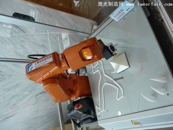 當日,台灣島內(nei) 第一台以工業(ye) 用機械手臂設計的大型化FDM 3D打印機也同時亮相,可用於(yu) 打印大尺寸工件;該機采用熱熔融沉積(FDM)技術將ABS、HIPS、PLA塑料線材,經加熱融化通過微細孔徑噴頭層層打印,並結合成型底板溫控技術,可克服目前小型個(ge) 人化3D打印機僅(jin) 能打印約20公分立方、特殊工件耗費支撐材料及容易翹曲變形的缺點。且具六軸運動功能,可解決(jue) 3D打印機以X、Y、Z 三軸打印層積無法多角度打印的限製,增加了打印的彈性,並可節省支撐材料,將來可替代大型木模的開發,節省1/3時間及20%成本。