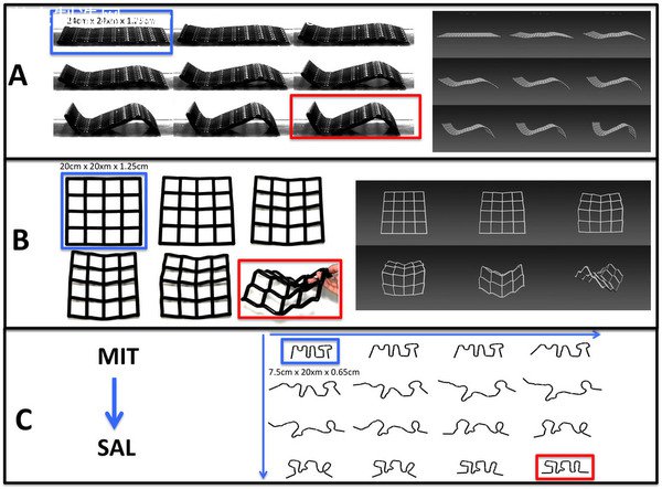 為(wei) 了展示其研究成果,研究人員利用兩(liang) 種不同的材料來製造出可展示各種屬性的3D打印結構。據了解,其中包括一種吸水材料——這是Stratasys公司開發的一種特殊材料,到現在為(wei) 止仍然保密——這種材料如果浸入水中,能夠膨脹至原有體(ti) 積的兩(liang) 倍,而在其它時候會(hui) 仍然處於(yu) 剛性狀態,因為(wei) 它是用一種硬塑料製成的。到目前為(wei) 止,他們(men) 已經用這種吸水性材料創建了一個(ge) 15×15英寸的方格,這種方格可變化複雜的幾何形狀。