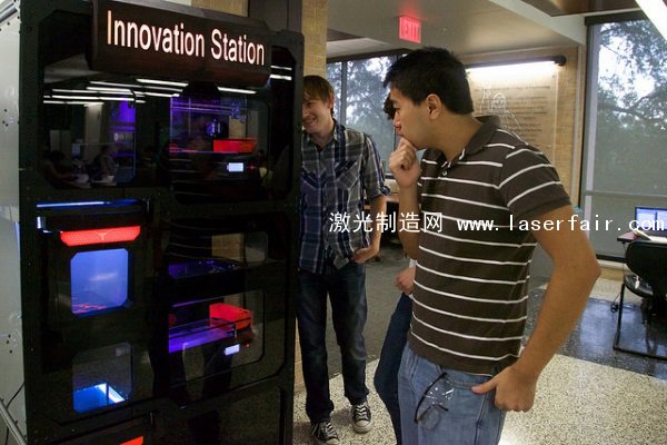 近日,德克薩斯大學Cockrell工程學院“T-Room”裏出現了一台與(yu) 眾(zhong) 不同的“自動售貨機”。這台名為(wei) Innovation Station的機器並不向學生供應零食和飲料,而是向學生們(men) 提供自助式3D打印服務。Innovation Station是由Cockrell工程學院的學生們(men) 製造的,任何德克薩斯大學的注冊(ce) 學生都可以免費使用它。目前它已經成功地為(wei) 學生們(men) 打印出了幾十件3D對象。
