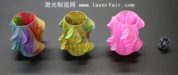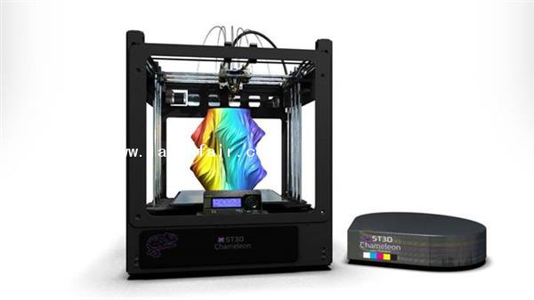 Something3D公司的這款Chameleon 3D打印機主要使用青色、品紅色、黃色、黑色和白色(CMYBWTM)的線材,然後根據用戶的需要通過以上5種顏色的組合,形成任意的色彩。