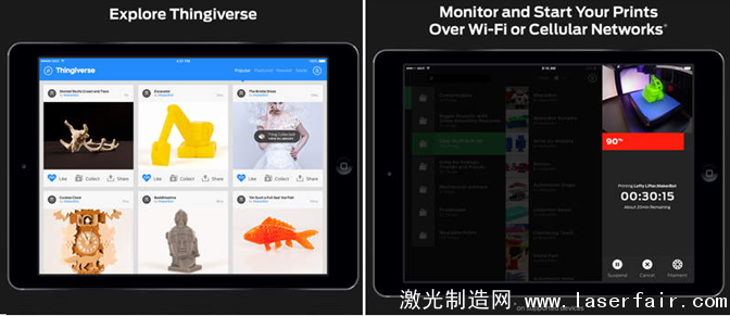 此次更新主要集中在用戶通過MakerBot的雲(yun) 服務隨時控製自己的MakerBot 3D打印機的能力。任何人隻要擁有3G或4G手機可以在任何地方控製和監視他們(men) 的3D打印任務。打印期間必須要去辦公室?沒問題,您可以安穩地在辦公室裏坐下來,監控您在家裏的打印機的運行,甚至啟動一個(ge) 新的打印任務。