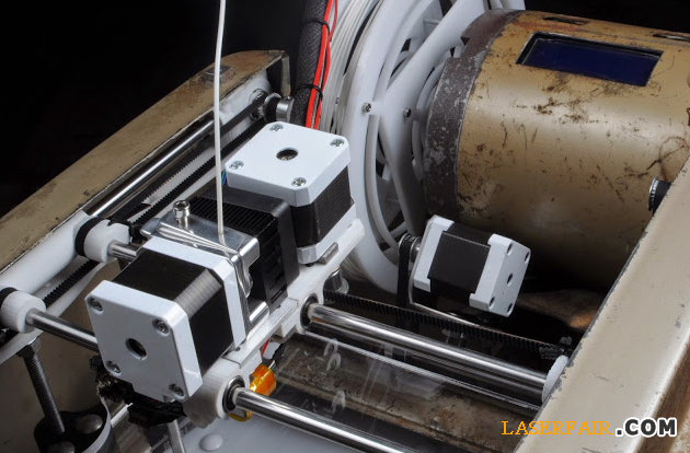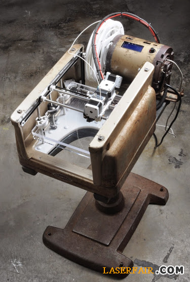 當這台3D打印機最終被組裝出來,展現在人們(men) 的眼前時(見下圖),真的給人一種時空錯亂(luan) 的感覺:半個(ge) 世紀以前鏽跡斑斑的鋼鐵鑄件上安裝著最新科技的產(chan) 品,與(yu) 其說它是一台3D打印機,倒不如說它是一件後現代的藝術品。
