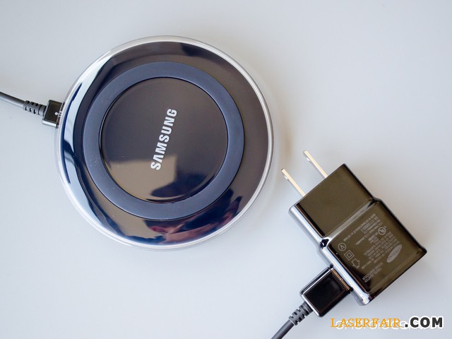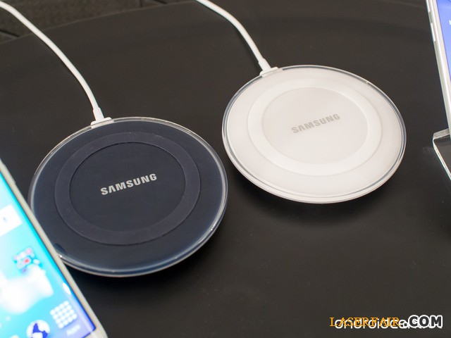 三星全新的Qi無線充電板隨三星GALAXY S6/S6 Edge一起發布,雙色設計的充電板采用飛碟造型,周邊設計了一圈LED燈可以用來提示充電過程,並且可以以5V/