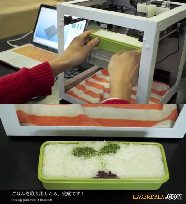 近日,日本慶應義(yi) 塾(Keio)大學的學生Yoshihiro Asano對一台普通的Solidoodle 3D打印機進行了改裝,將其變成了一台特殊的食品打印機Lunchbot,這台Lunchbot不能幹別的,隻能使用各種調料裝飾您的便當盒,在米飯上繪出各種有趣的圖案。
