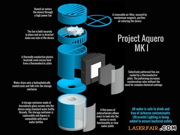 “Aquero凝結空氣中的水蒸氣並將之變為(wei) 飲用水。而且它是便攜式的,尺寸並不比一個(ge) 標準的可反複灌水的瓶子大多少。據了解,由於(yu) 在一些關(guan) 鍵技術上進行了創新,並使用了先進製造技術(3D打印),它的成本很低。最重要的是,它的效率很高,通過對冷凝器技術進行優(you) 化,大大提升了它的水產(chan) 生速度。”
