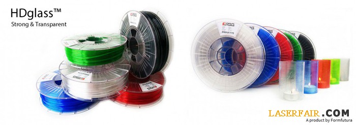 FormFutura公司說他們(men) 的HDglass線材具有其它PET材料所有的強度、耐用性、耐熱性,而且可允許90%的可見光穿過它,隻有1%的霧度或失真。這使得HDglass成為(wei) 迄今為(wei) 止市場上最透明的3D打印線材,可以用來製作玻璃狀物體(ti) 。此外,它還能被製成多種顏色,而不會(hui) 犧牲任何透明度。