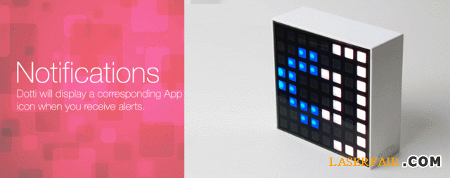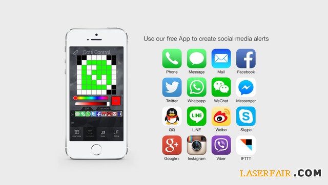 Dotti亮燈圖案有很多種,包括紅色愛心、超級瑪麗(li) 裏麵的綠色香菇和FaceBook 的“讚”圖示等等。Dotti像素燈還有手機提示功能,不管是有短信、來電、未接來電、郵件等等,都可以自由選擇是否要通過Dotti來通知我們(men) ,隻要看Dotti上麵的燈,就可以看見提示。