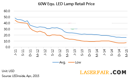 根據LEDinside研究資料顯示,2014年全球LED照明產(chan) 值達210億(yi) 美元,其中LED球泡燈占全體(ti) 照明產(chan) 品的數量高達一半左右,然而單價(jia) 相對偏低,因此LED球泡燈的產(chan) 值占比約37% 。儲(chu) 於(yu) 超表示,從(cong) 2010年開始,LED球泡燈每年的降價(jia) 幅度高達30%,雖然因為(wei) 價(jia) 格快速下滑而刺激出大量的需求,但是惡性價(jia) 格競爭(zheng) 使照明廠商利 潤不斷的衰減,在LED球泡燈的出貨數量與(yu) 獲利跟不上傳(chuan) 統光源的情況下,導致飛利浦與(yu) 歐司朗都想要把原有的照明業(ye) 務做分拆。