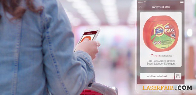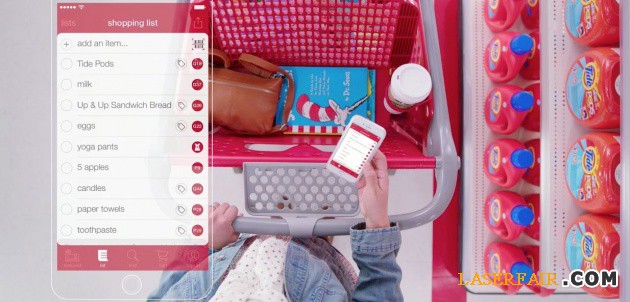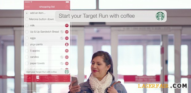 Target網站彈出的宣傳(chuan) 視頻中顯示了一個(ge) 年輕購物者進入商店後大部分的時間都在邊推購物車邊將手機朝上對著燈光,首先彈出免費送一杯星巴克咖啡的信息,然後顯示了最快前往洗滌用品的路線,她到達後並將各種肥皂的比較信息送達手機。高效率、輕鬆活潑的購物旅程結束後,手機及其應用程序還能幫助她在收銀台付款。