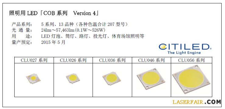 西鐵城電子株式會(hui) 社推出實現了世界頂級發光效率的照明用LED 封裝“COB係列