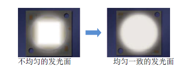 ・考慮了照明器具構成時的光學設計,通過芯片的最佳配置實現了發光麵的均勻一致。