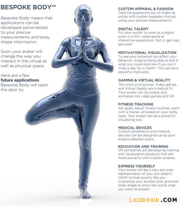 “當前,您的3D數字化身可以用於(yu) 視頻遊戲、虛擬現實、3D打印,以及定製時裝等等,這裏隻是僅(jin) 舉(ju) 幾例,而這些直接應用會(hui) 帶來更多的可能性。 想象一下,你的數字化身出現在電影或視頻遊戲中,並讓它為(wei) 你工作。”