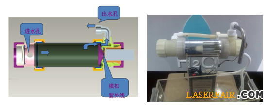 實驗方案采用流動水緩衝(chong) 裝置,裝置結構以石英玻璃為(wei) 透光層、外鍍鏡麵鋁作為(wei) 反射層,在一定的容量下,水注入裝置中經過循環流出,為(wei) 深紫外LED爭(zheng) 取殺菌所需時間。將此裝置添加在淨水機中,可有效處理因二次汙染引起的細菌超標現象。