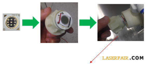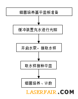 2.將緩衝(chong) 裝置充滿混有細菌的水,點亮深紫外LED照射;