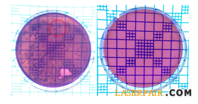 圖4 殺菌前(左圖)和殺菌後(有圖)對比照片(注:左圖紅圈中黑點為(wei) 細菌菌落典型)