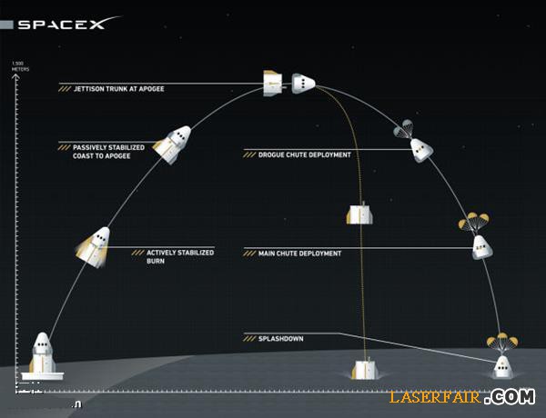 除此之外,SpaceX公司團隊希望從(cong) 這個(ge) 試驗發射解到進行飛船座艙逃逸的適當操作順序、8台SuperDraco 3D打印發動機對與(yu) 輸入數據的實時反應能力,以確保龍飛船船員處於(yu) 適當的狀態中,並獲得最大高度和下降過程中的精確軌跡數據,以及飛船內(nei) 部和外部的數據等。