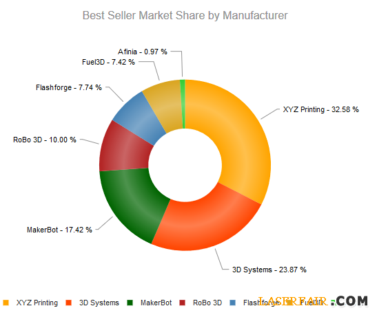 上個(ge) 月在百思買(mai) 在線(BestBuy.com)銷售最好的3D打印機廠商:
