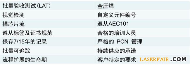 特別地,為(wei) 配合特定要求的FDA III,安森美半導體(ti) 提供醫療級標準元件用於(yu) 植體(ti) 或生命攸關(guan) 的應用,並提供符合MIL-PRF-1950標準、認證的MIL-STD-750 測試法、支持JAN/JANHC 品質水平、於(yu) 國防後勤局(DLA)批準的生產(chan) 線製造等軍(jun) 工標準協議模式的高可靠性工藝流程。